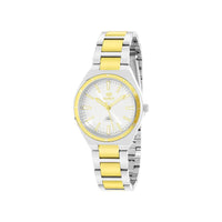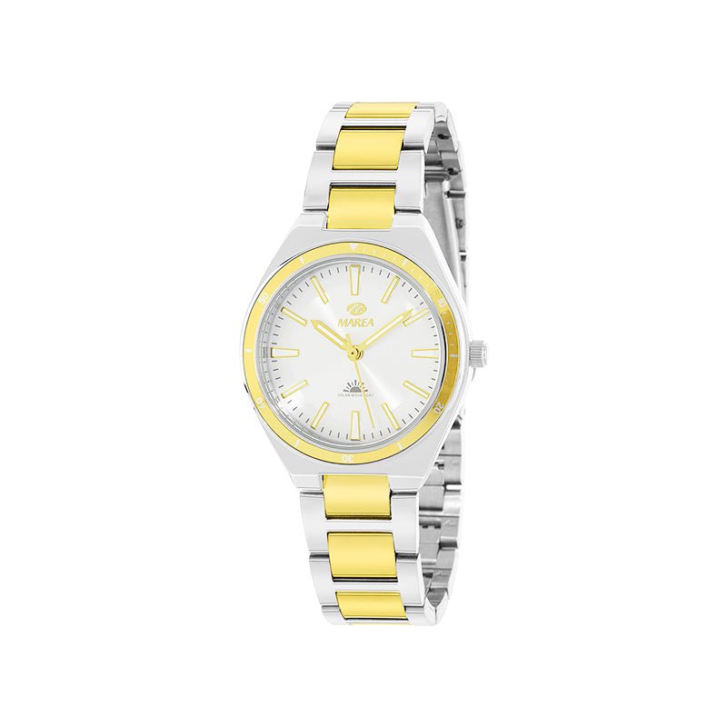 O seu mostrador de 34mm oferece um visual equilibrado e feminino, enquanto a combinação bicolor entre detalhes dourados e prateados adiciona um brilho discreto e sofisticado. A bracelete em aço inoxidável garante resistência e conforto, tornando o Mira ideal para o uso diário.