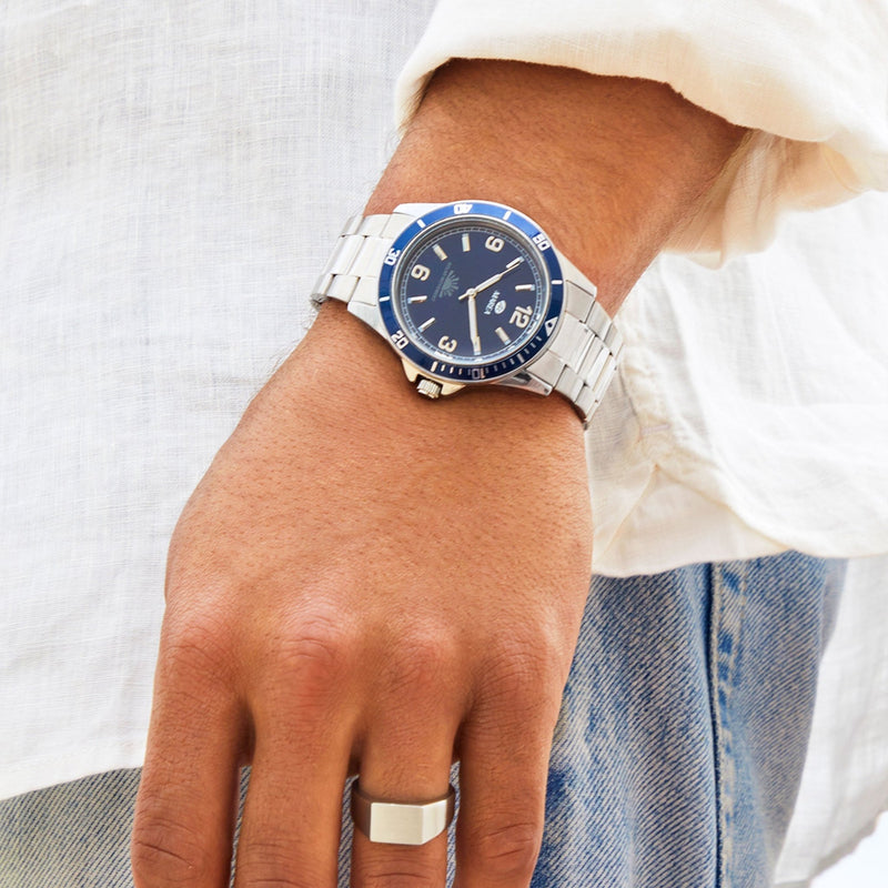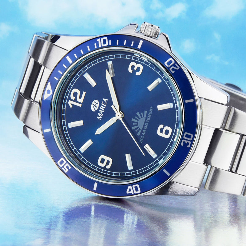 O grande destaque deste modelo é o seu movimento japonês de carga solar – 3 agulhas, que utiliza a luz natural ou artificial como fonte de energia, dispensando a substituição de baterias e promovendo uma opção mais sustentável.
