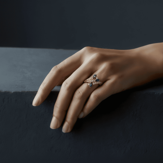 Anel em Ouro 19kl com Safiras e Diamantes (T16)