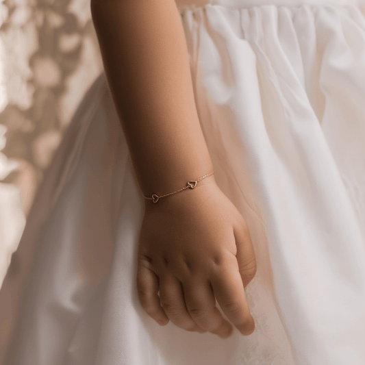 Pulseira Elos em Ouro 19kl com Corações para Criança (13.5cm)