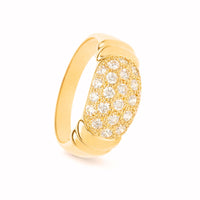 Anel em ouro de 19 quilates, com design elegante e contemporâneo, totalmente cravejado de zircónias que conferem um brilho intenso e sofisticado. A estrutura sólida e o acabamento cuidado tornam esta peça ideal para quem procura um anel marcante, versátil e cheio de presença. Perfeito para ocasiões especiais ou como prenda distinta que simboliza elegância e bom gosto.