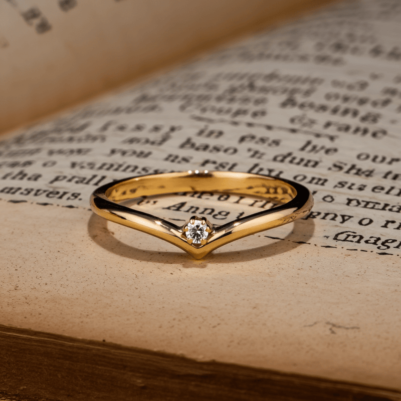 Delicate and majestic, this gold solitaire ring enchants with its tiara-shaped design, bringing a touch of royalty and sophistication. The center stone shines like a true symbol of elegance and eternity, making this piece perfect for special occasions.