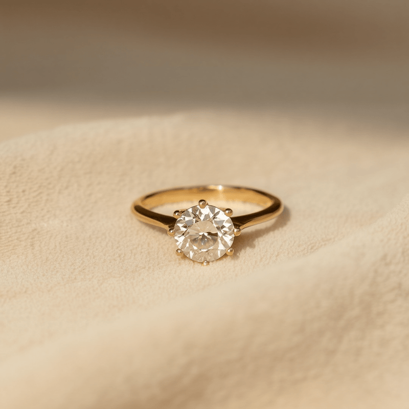 Solitaire Ring in 19k Gold with Zircon supported by eight claws – Elegance with Royalty