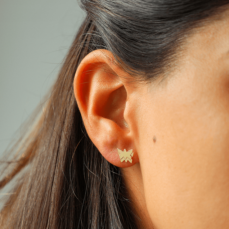 Small 19.2K gold earrings: butterfly-shaped elegance. Superior-quality handcrafted jewelry for sophisticated women. Perfect for special occasions or everyday wear. The unique shine of Portuguese gold enhances your natural beauty. Timeless design with a modern twist. Shop these exceptional earrings now!