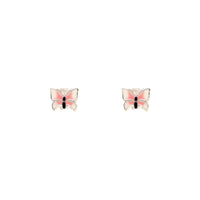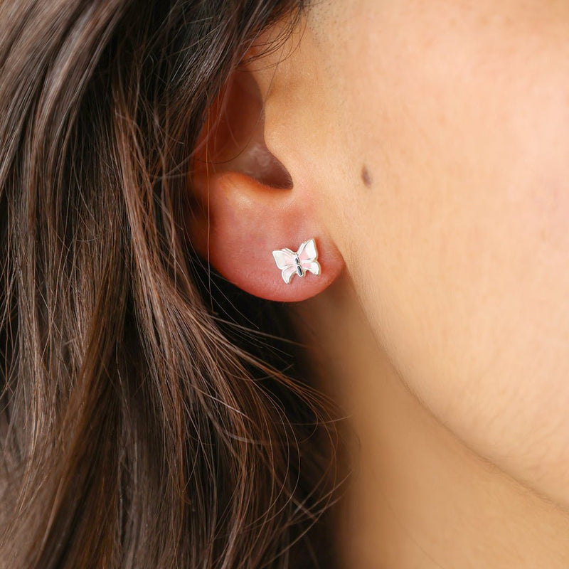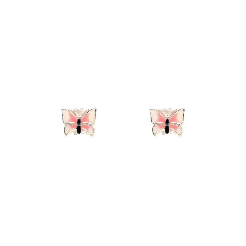 Children's Earrings in 925 Silver with Butterflies in White and Pink Enamel
