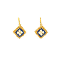 Brincos Quadrados em Ouro 19kl com Caramujos e Esmalte Azul (1.4cm)