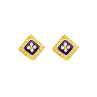 Tradition Square Earrings in Gold-Tone Silver and Blue Enamel