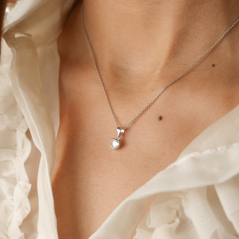 925 Silver Necklace and Earrings Set with Heart Zircon