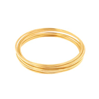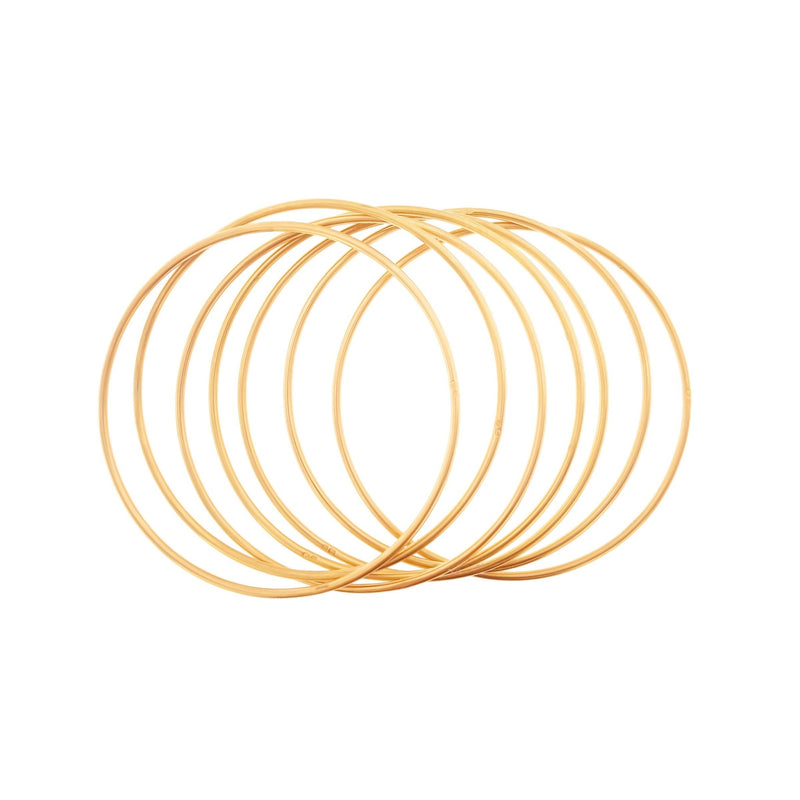 The 19kt Gold Seven Slave Bracelet Set (6.7cm) is a timeless classic, consisting of seven delicately polished bracelets that complement each other perfectly. Their versatile design allows them to be worn together for a sophisticated look or separately, adapting to any occasion.