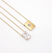 Scapular in 925 Silver, plated in 24k Gold, adorned with Zircon and a Medal with Zirconia in the shape of a heart embraced as a harbinger of a bright future.