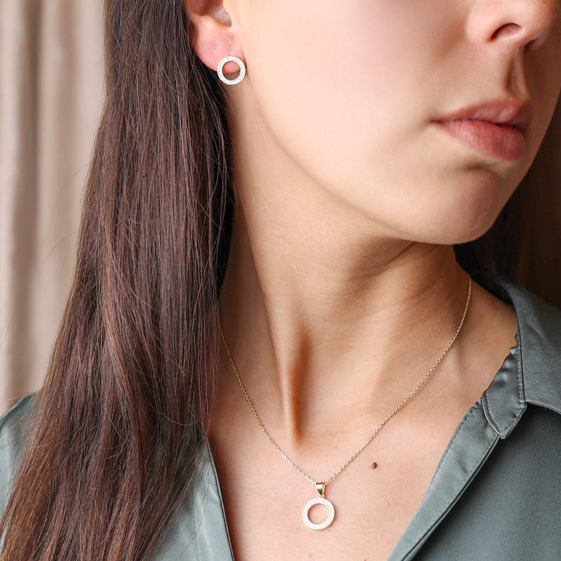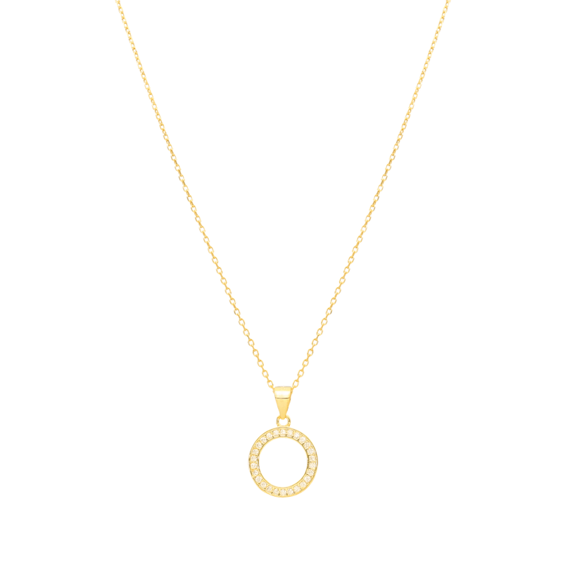 Whether you're giving it to someone special or complementing your jewelry collection, this gold-plated silver open circle necklace studded with cubic zirconia is a timeless piece, full of charm and meaning.