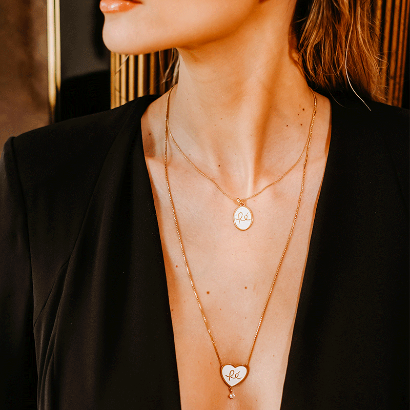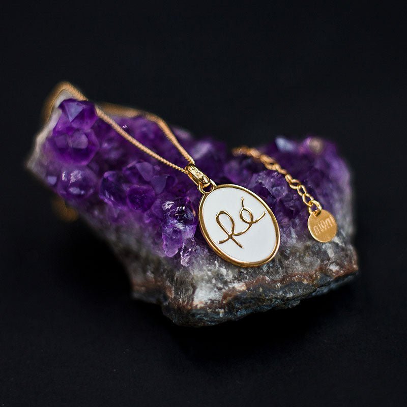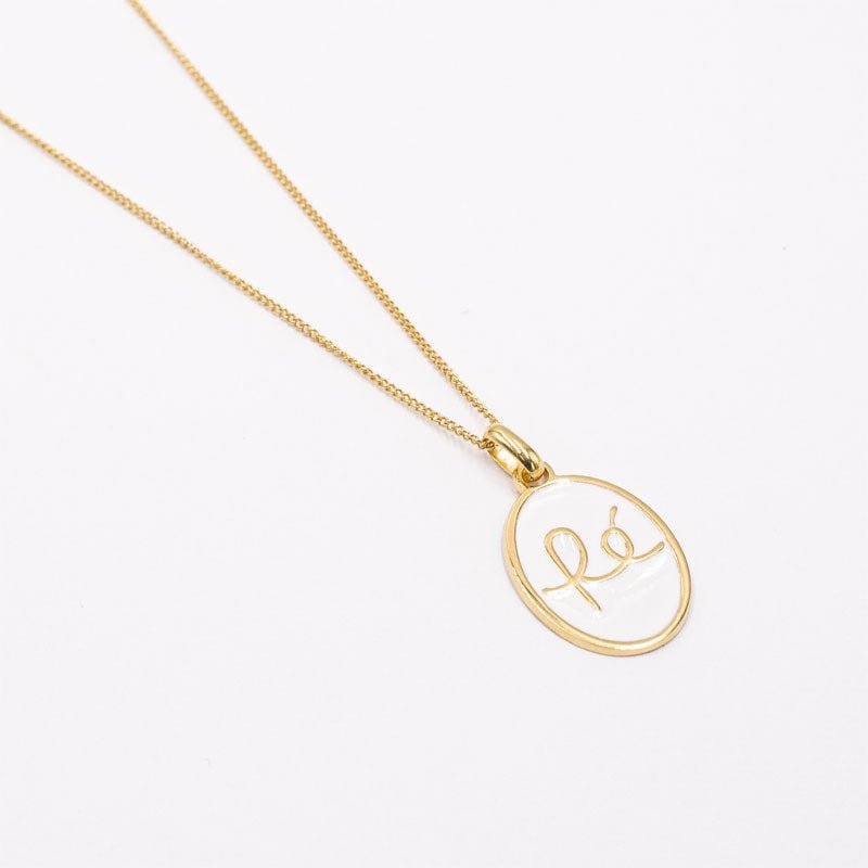 Sterling Silver (925) necklace, plated in 18kt Gold, adorned with a White Enamel Medal and Zirconias, with the word Faith.