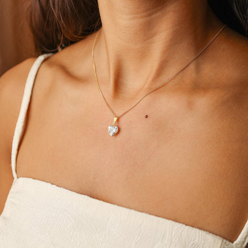 With a romantic and sophisticated design , this necklace is perfect for symbolizing love, tenderness, and the deepest emotional bonds. The heart-shaped zircon reflects the light intensely, creating a delicate and feminine focal point. A timeless piece of jewelry that combines beauty, emotion, and refined style.