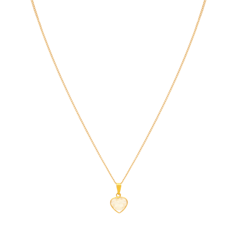 This charming 19kt gold barbel chain necklace features a heart-shaped pendant featuring a clear, cut zircon encircled by a thin gold band , further enhancing the stone's brilliance and purity. The barbel chain adds strength and elegance, making this necklace ideal for everyday wear or special occasions.