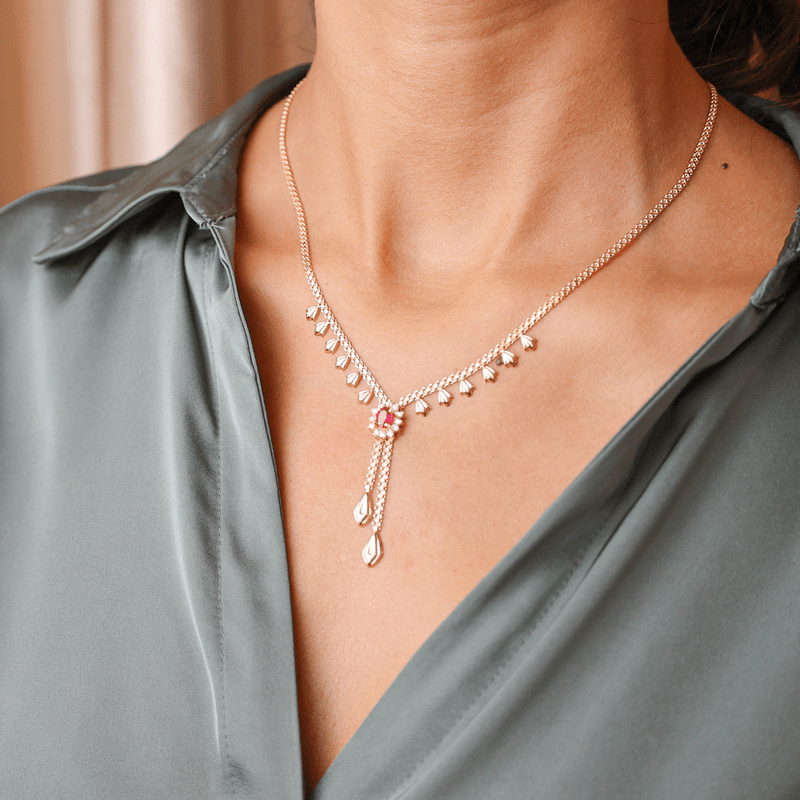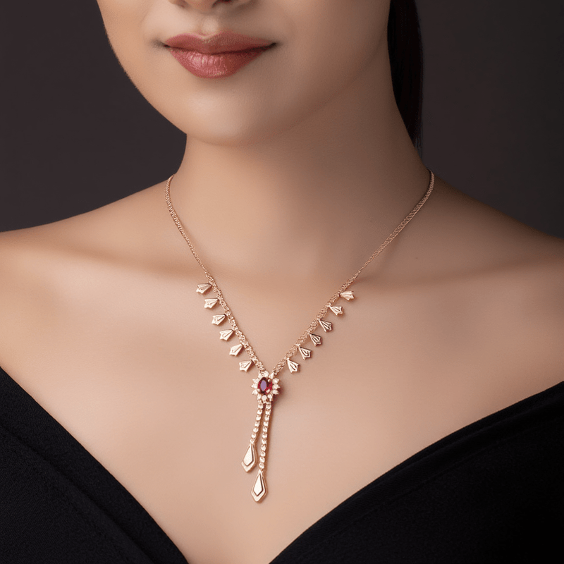 Gargantilha de Ouro 19.2kl com Rubi ladeado de Zircónias e Detalhes Elegantes – Sofisticação Clássica com Design Exclusivo