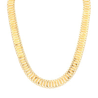 A Gargantilha de Ouro 19kl com Efeito Ondulado e Acabamento Escovado é uma joia que combina leveza, modernidade e sofisticação num design subtil e elegante. Composta por finos rectângulos de ouro delicadamente unidos entre si, esta gargantilha forma uma malha fluida com um movimento natural e harmonioso ao redor do pescoço. O acabamento escovado confere uma textura suave e contemporânea ao ouro, criando reflexos únicos que atravessam toda a extensão da peça com um efeito ondulado encantador.