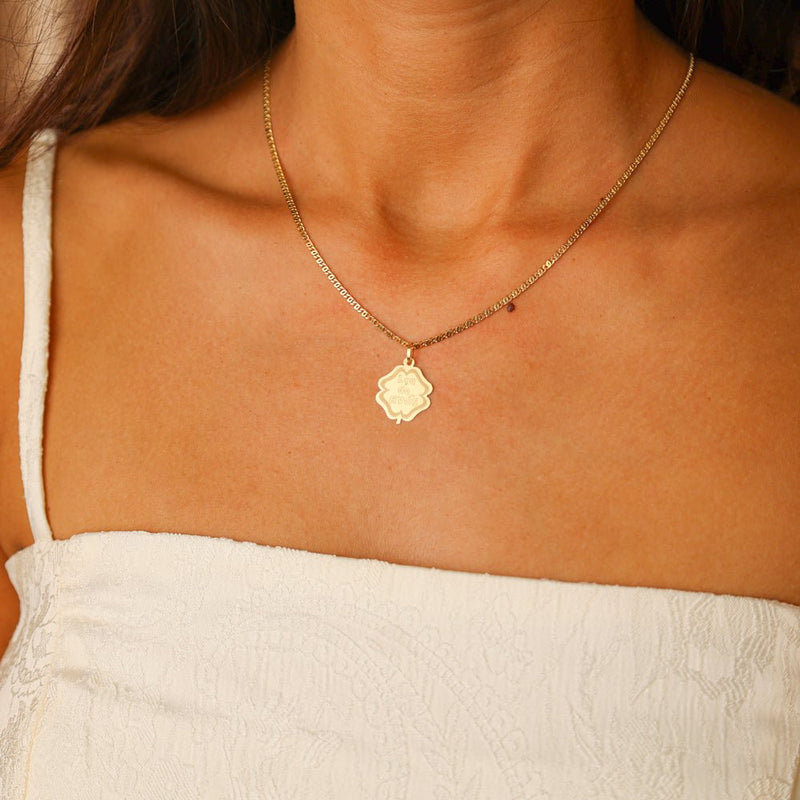 The 19.2kt gold adds a touch of luxury and durability to the medal, making it not only a beautiful piece but also an heirloom that can be passed down. The delicate clover design and careful engraving make this medal not just a piece of jewelry, but a tangible expression of affection and family history.