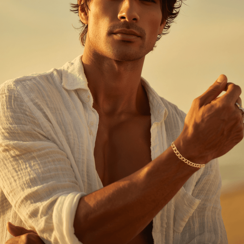 Crafted from sterling gold, this bracelet features a robust and robust barbell chain link, creating a masculine and imposing look. Each link is carefully interwoven, ensuring durability and exceptional finish.