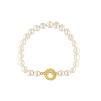 Gold Plated Silver Bracelet with Pearls and Clover Medal