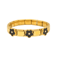 Made in Made of high-quality gold-plated steel, this bracelet is durable and sophisticated, perfect for everyday wear or special occasions. black flowers add an artistic and modern touch that transforms any look into a true style statement.