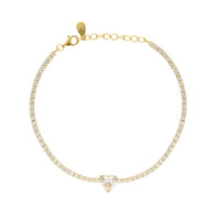 Riviera Bracelet in 925 Gold Plated Silver with Heart Zircon and elegant Zircon studded bracelet