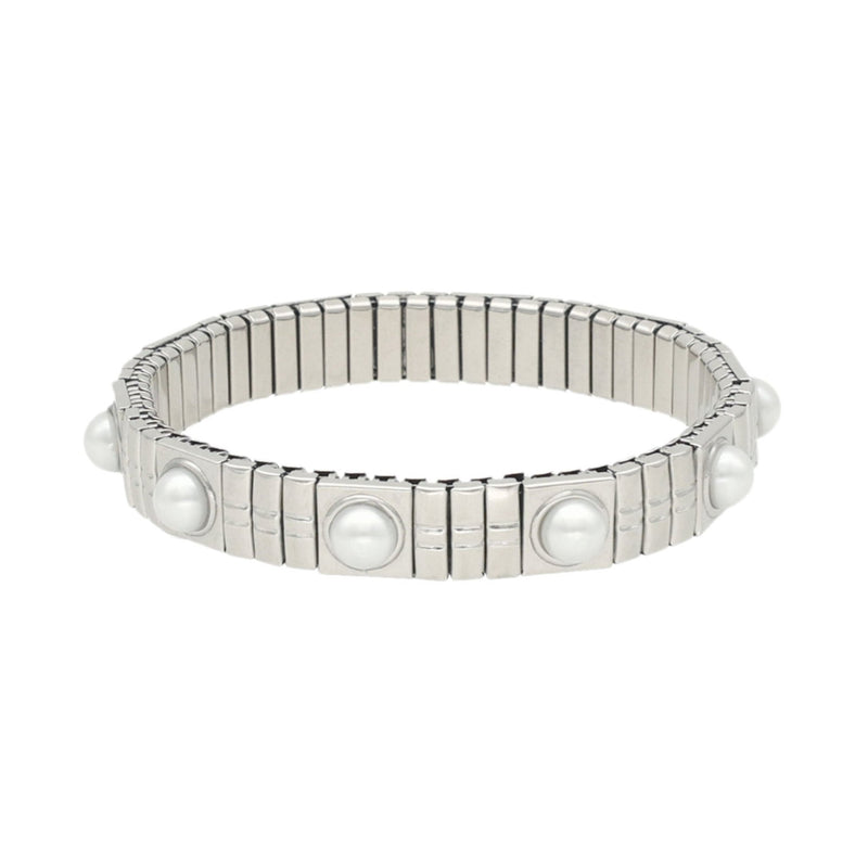 White Bracelet Style Bracelet in Steel with Pearls throughout the bracelet