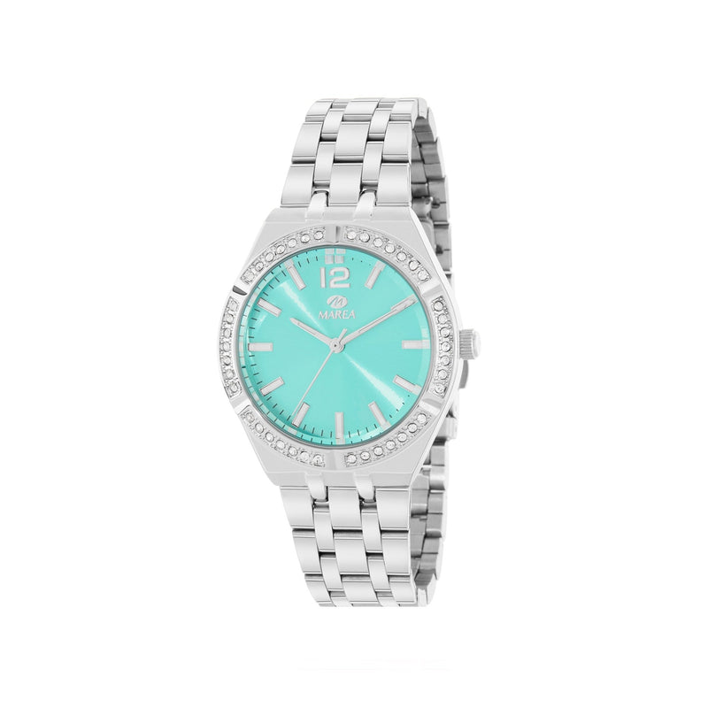 Inspired by the grandeur and serenity of the firmament , the Celestial Women's Watch stands out for its radiant turquoise dial , evoking the beauty of the heavens on clear days. Delicate details in sparkling cubic zirconia stones add a touch of sophistication, making it perfect for those who value style and refinement.
