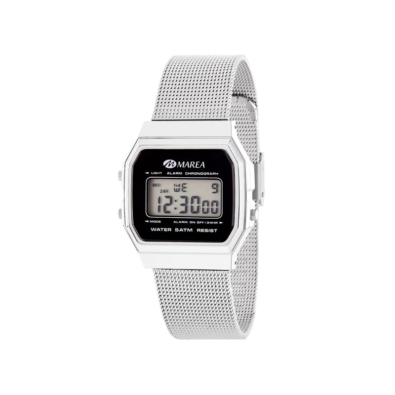 The stainless steel bracelet provides strength and a sophisticated look, while the digital format adds a modern and practical touch, perfect for urban life.