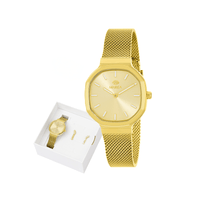 O Relógio Véra é uma peça de elegância feminina, concebida em aço inoxidável dourado. O seu design destaca-se pela caixa octogonal com aro dourado, que enquadra um mostrador com ponteiros e marcadores luminescentes, garantindo uma leitura nítida mesmo em ambientes de pouca luz. O movimento quartzo analógico assegura precisão e fiabilidade, protegido por vidro mineral resistente.
