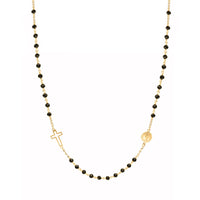 Elegante rosário em Ouro de 19 quilates composto por delicadas contas pretas facetadas que criam um contraste sofisticado com o brilho dourado da corrente. As pedras refletem a luz de forma subtil, acrescentando profundidade e carácter à peça.