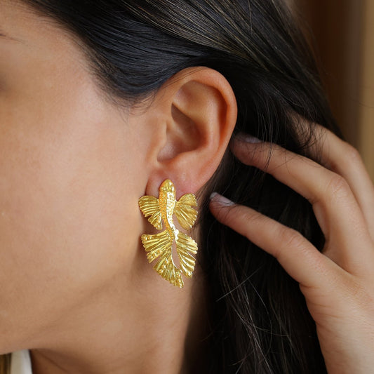 Pendientes de carpa koi en plata dorada