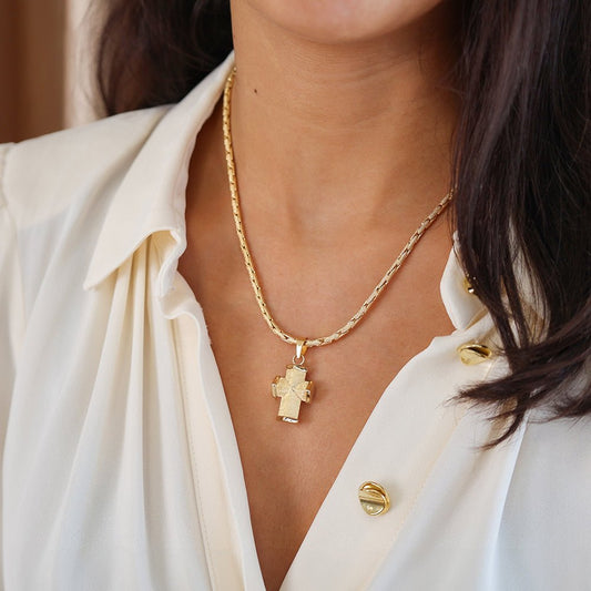 La cruz es un símbolo universal muy antiguo, utilizado por diversas culturas, creencias y religiones. Generalmente, simboliza buena fortuna para quien la porta. Aquí tienes algunas sugerencias de collares de cruz para hombre.