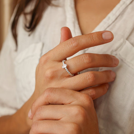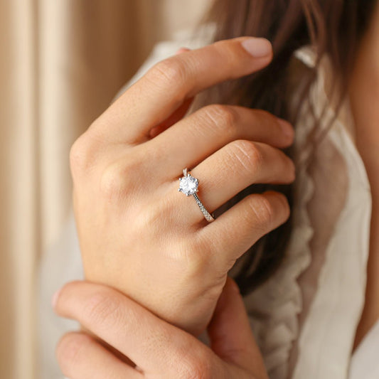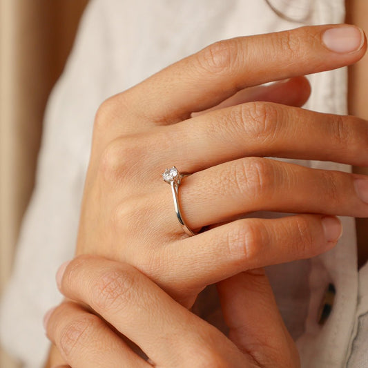 Anillo Solitario en Plata con Circonitas (7mm) y Aro con Circonitas