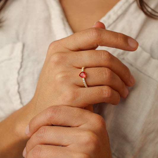 Anillo solitario en plata bañada en oro con circonita de corazón