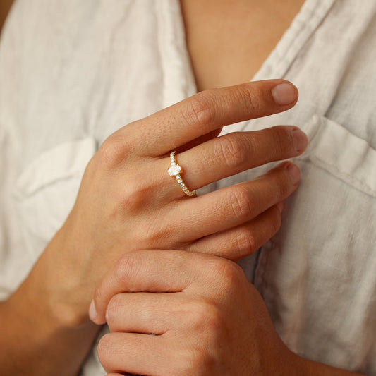 Anillo solitario en plata bañada en oro con circonita ovalada