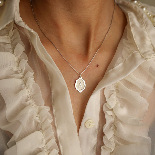 Collar de plata personalizable con nombre, corazón y motivos florales