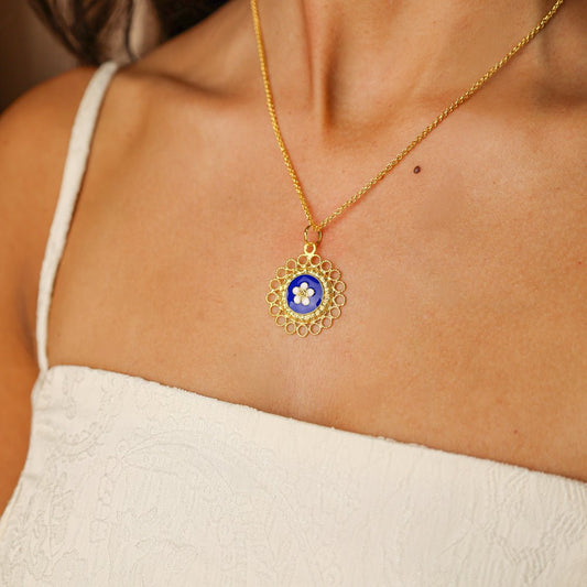 Collar Tradición en Plata Dorada con Medalla de Caracol Floral