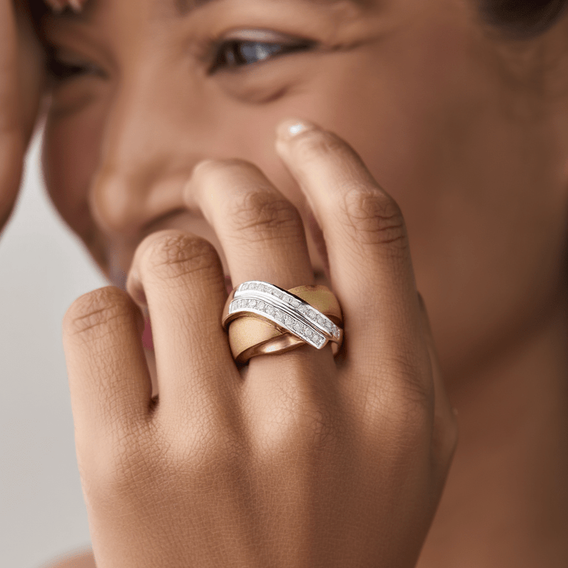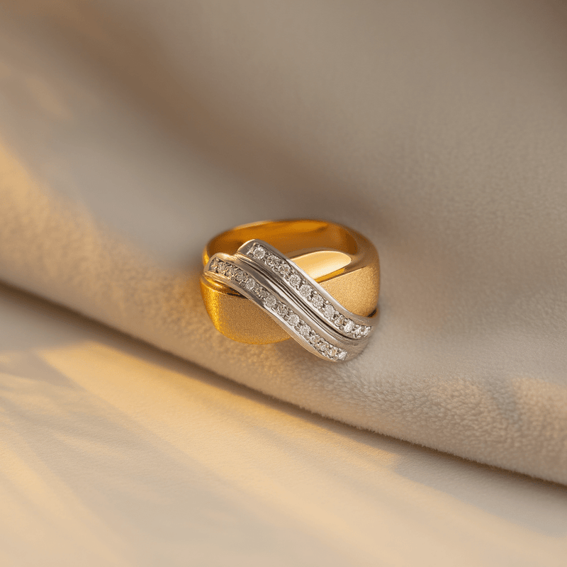 Anillo de oro de 19,2 kl con detalle de oro blanco de 19,2 kl engastado con diamantes: lujo esculpido en movimiento