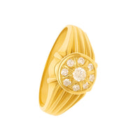 Anillo de mesa de oro de 19 k con circonitas y estrella: mitad mate, mitad brillante.
