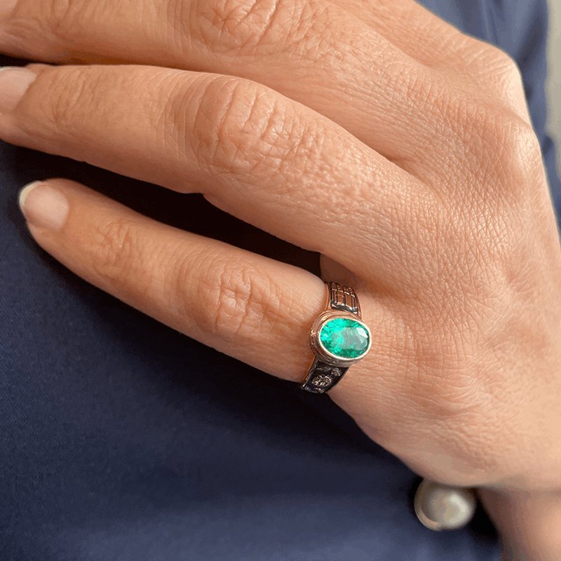 Anillo Curso (ESES) en Oro Amarillo de 19,2K con Cuarzo Verde.