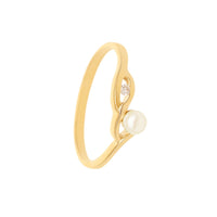 Anillo de oro de 19,2 k con hoja adornada con perla y diamantes