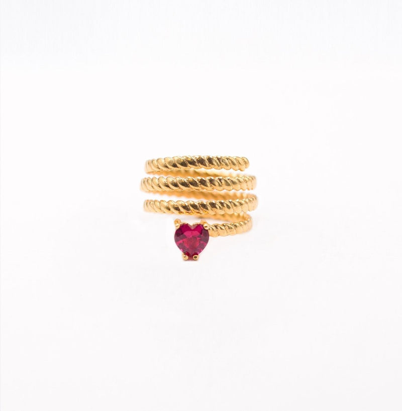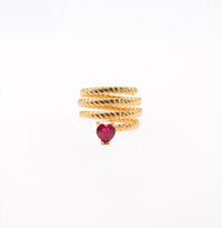 Anillo Romeo y Julieta en Plata 925, con efecto entrelazado, adornado con Piedra Rubí en Talla Corazón
