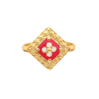 Anillo Tradición Cuadrada en Plata Dorada y Esmalte Rojo