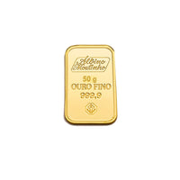 A Barra de Ouro 24 Quilates (50g) é um símbolo de valor, segurança e elegância intemporal. Com um peso de 50 gramas, esta barra de ouro de 999,9 milésimas representa a forma mais autêntica e refinada de investimento. O seu formato compacto torna-a perfeita para quem deseja começar ou expandir a sua coleção de ouro físico com uma peça de elevado prestígio e pureza garantida.