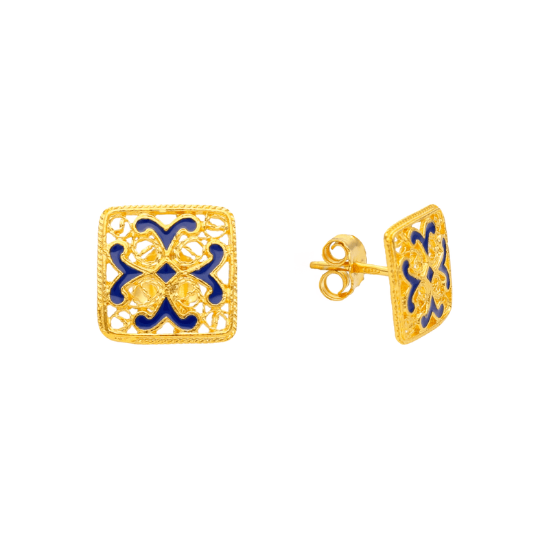 Pendientes Alma de Lisboa en plata 925 bañada en oro con esmalte azul – Inspirados en los azulejos portugueses