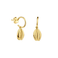 Pendientes de aro con caracola en plata 925 bañada en oro