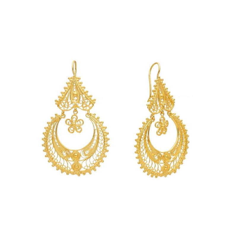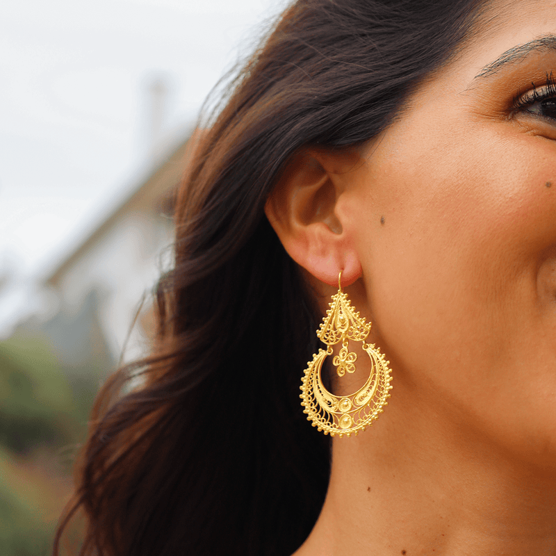 La forma clásica de los pendientes evoca las antiguas tradiciones portuguesas, ofreciendo un look atemporal y elegante. Los pendientes de plata bañados en oro son versátiles y se pueden usar tanto en eventos formales como informales. Su diseño clásico los convierte en una opción atemporal que complementa diversos estilos.