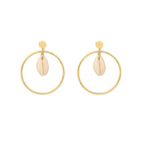 Pendientes circulares en plata 925 dorada adornados con conchas cauri