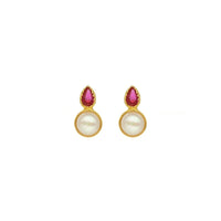 Pendientes de plata bañados en oro con perla y circonita rosa