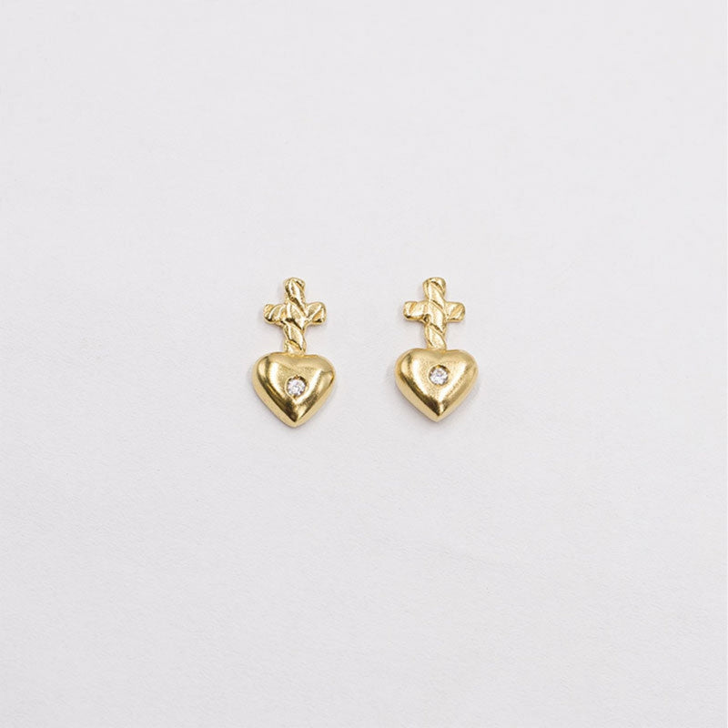 Pendientes de Plata de Ley (925), adornados con un Corazón, con Circonitas Blancas.